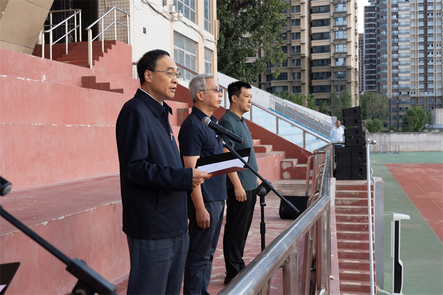 金秋送爽,晨光熹微。9月8日,开学第一天清晨,薄雾渐散,第一缕阳光洒满校园,我校在明向校区与迎西校区同步举行2025-2026学年升国旗仪式。全体师生以昂扬姿态整齐列队,校领导分别前往两校区参与仪式,与师生共同迎接新学期的到来。校党委副书记、副校长肖连团,校党委常委、副校长任喜莹分别主持两校区仪式。