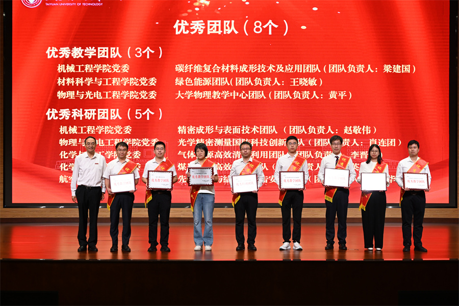 肖连团宣读《关于表彰2025年教职工荣誉奖项优秀团队和先进个人的决定》,对碳纤维复合材料成形技术及应用团队等8个优秀团队、权龙等95名先进个人予以表彰。