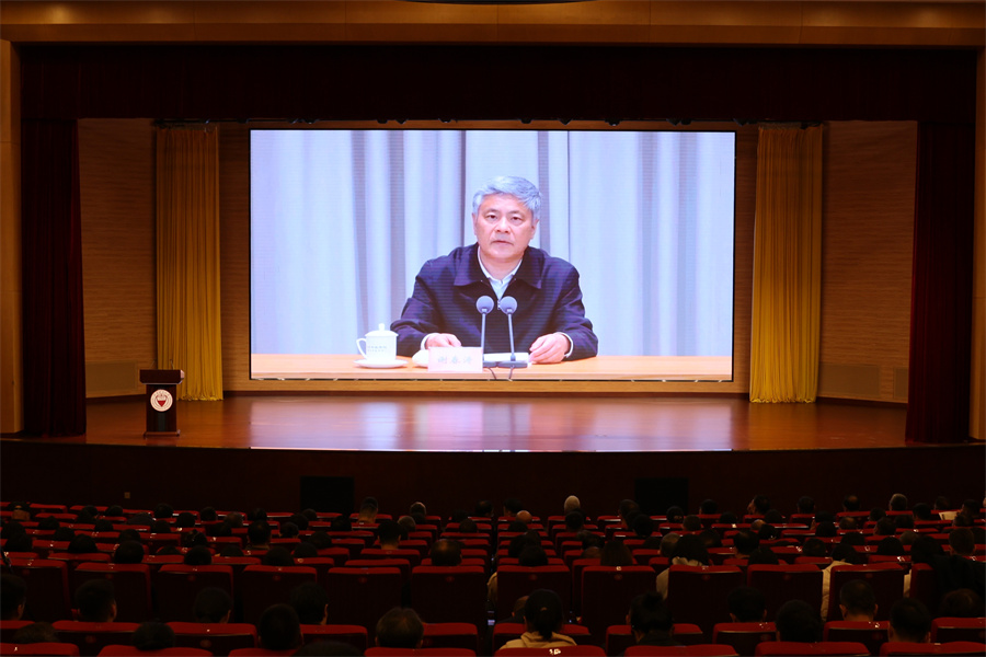 10月27日下午,我校举行2025年党员基本培训下半年第一次集中大课。中共中央党校(国家行政学院)分管日常工作的副校长(副院长)谢春涛教授作题为《中国共产党与中华民族伟大复兴》视频辅导报告。校党委书记沈兴全主持培训并讲话。校领导班子成员,全校8000余名师生党员分别在明向校区学生活动中心报告厅主课堂和60个分课堂参加学习。省委教育工委派专人到会指导,省内部分兄弟高校组织部负责人到会观摩。