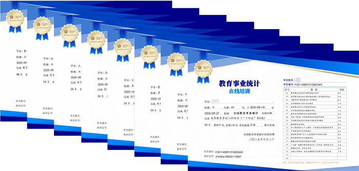 学校注重统计队伍专业能力建设,配备专兼职统计员并实行报备制度。按照“分级实施、按需施训”原则,组织统计人员深入学习相关法律法规、数据质量控制要点及统计分析方法等,不断提升统计人员专业素养。今年9月,发展改革部安排专项经费,组织16名新任统计员参加教育事业统计在线培训,全部考核合格取得结业证书,确保“先培训、后上岗”。