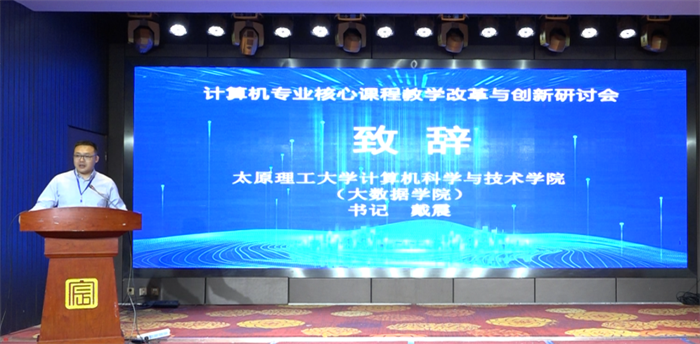 会议现场气氛热烈,学术氛围浓厚。计算机科学与技术学院(大数据学院)副院长李东喜主持研讨会。学院党委书记戴震发表了热情洋溢的致辞,戴震首先对与会嘉宾的到来表示热烈欢迎,并对计算机课程教学改革与创新的重要性进行了阐述。他指出,随着信息技术的飞速发展,计算机教育面临着前所未有的机遇与挑战。为了培养更多适应社会发展需求的创新型科技人才,必须不断推动教学改革与创新,探索更加高效、科学的教学模式和教学方法。