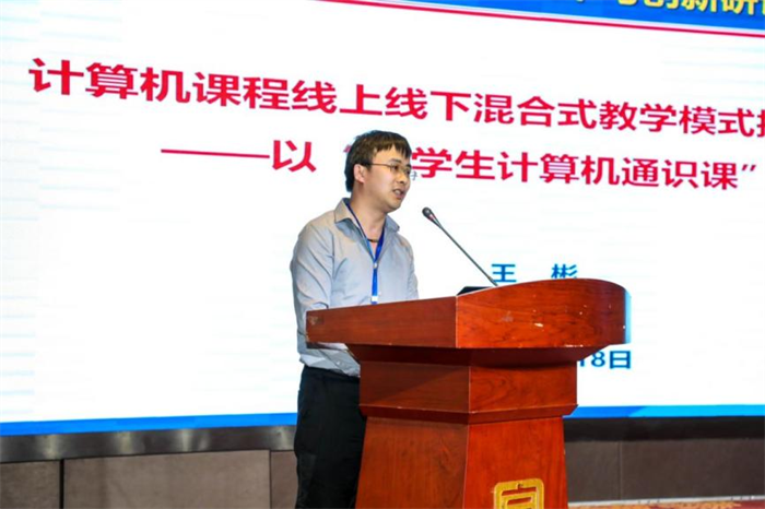 我校计算机科学与技术学院(大数据学院)王彬教授详细介绍了“大学生计算机通识课”线上线下混合式教学模式的设计和实施过程。他从课程定位、教学目标、教学内容、教学方法等方面进行了全面阐述,并分享了通过线上线下相结合的方式提高学生的学习效果和兴趣的经验。他还介绍了开设人工智能通识课的必要性和依托数字化教材的课程建设思路,为与会者提供了宝贵的参考和启示。
