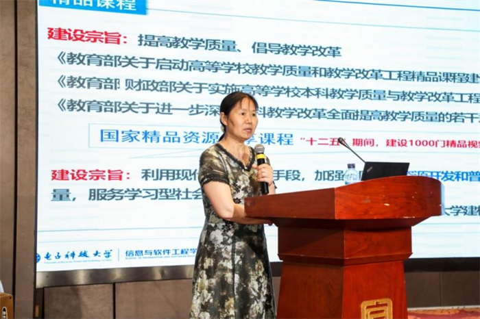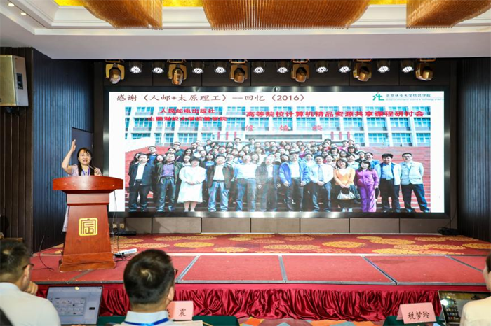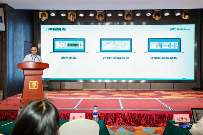 在主题报告环节,各位专家、学者和一线教师纷纷上台分享他们的研究成果和实践经验。北京林业大学计算机系主任李冬梅教授以“数据结构”课程为例,分享了她在混合式教学模式方面的探索与实践,并详细介绍了线上线下混合式教学模式的创新点,包括如何利用线上平台提供丰富的教学资源、如何设计有效的实践环节、如何引导学生进行自主学习等。她强调,混合式教学模式能够充分发挥线上线下的优势,激发学生的学习兴趣和积极性,提高教学效果和质量。