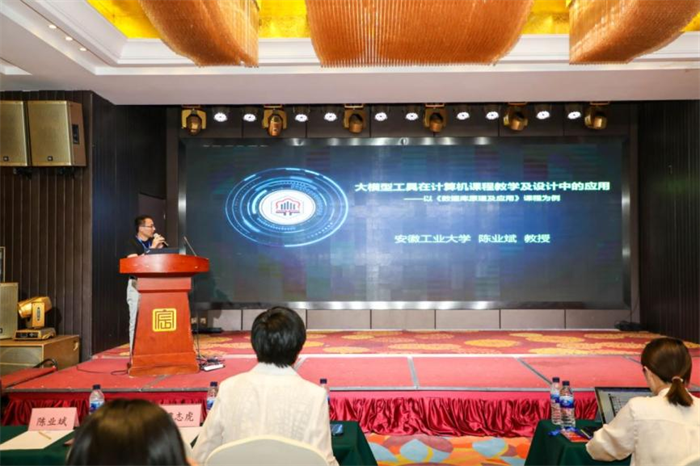 下午的研讨会中,安徽工业大学计算机科学与技术学院陈业斌教授在最新教学探索中,将大模型工具应用于数据库课程。他详细介绍了大模型工具在数据库课程设计、实验项目、案例分析等方面的应用,为学生提供了更加直观、生动的学习体验。陈教授的创新实践为计算机课程的教学与设计提供了新的思路和方法,引发了与会者的广泛关注和讨论。