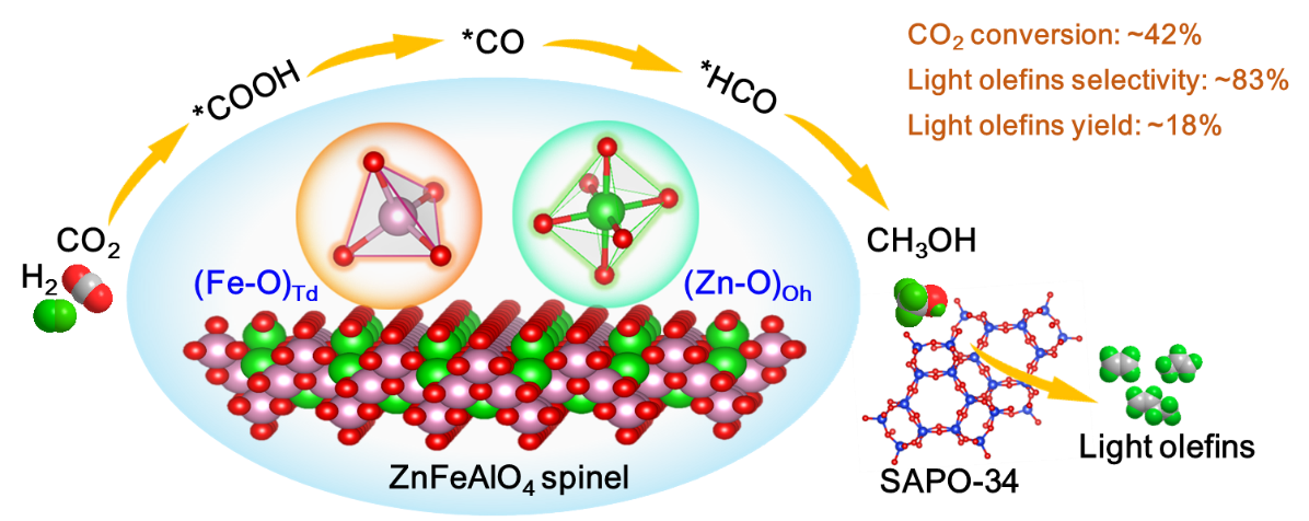图1. ZnFeAlO4/SAPO-34复合催化剂催化CO2加氢制低碳烯烃