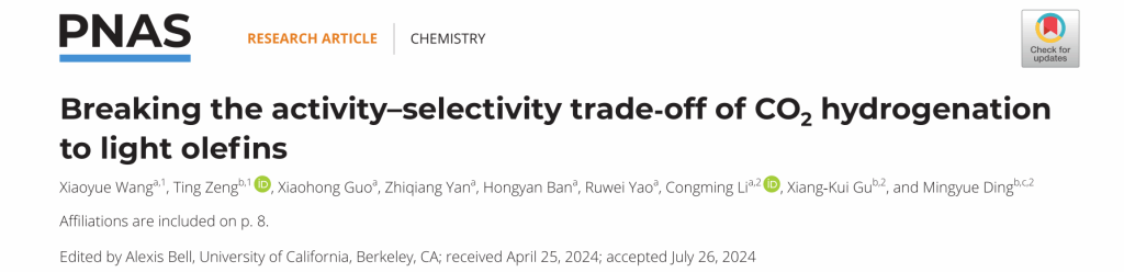 我校李聪明团队与武汉大学定明月团队在PNAS刊发CO2加氢制低碳烯烃的突破性研究进展