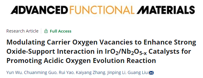 化学与化工学院李晋平教授团队刘光教授课题组在《Advanced Functional Materials》发表电解水制氢最新研究成果
