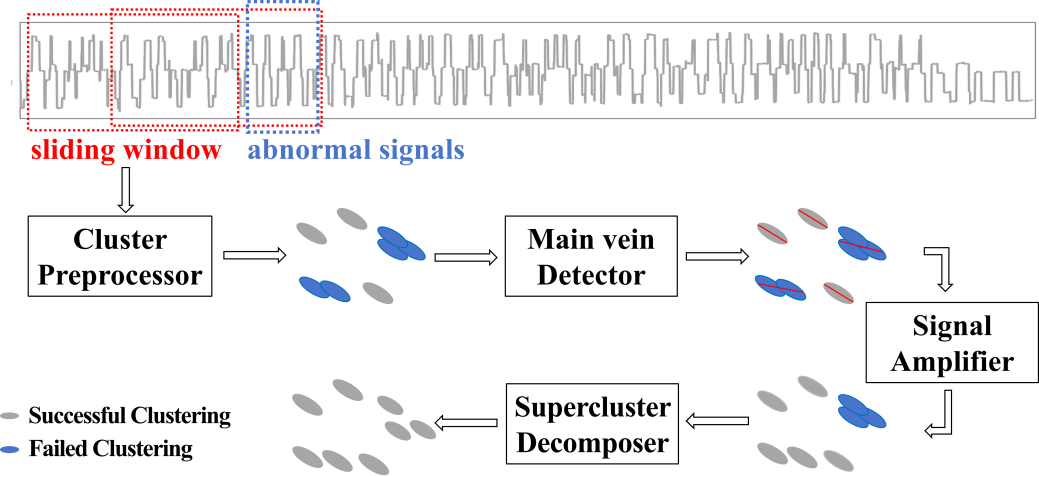 研究团队创新性地提出了一种基于主脉识别的信号簇分析方法—Salix-Leaf,旨在解决非均匀分布信号的超级簇问题。该方法通过提取各信号簇的主脉特征实现细粒度聚类,并利用主脉方向性特征作为聚类准确性的验证依据。此外,Salix-Leaf方法引入了超聚类分解器对信号进行分段聚类分析,显著提升了算法的鲁棒性和实用性能。实验结果表明,该方法能有效保障反向散射系统的并发传输性能。