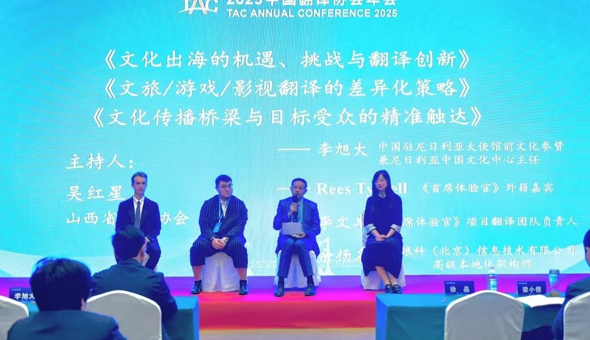 Rees Tyrrell 还参与了会议的互动环节,与来自全国各地的翻译专家、学者,就文旅、推广中国文化、影视等领域的翻译策略进行了深入交流。他表示,作为一名外籍教师,能够参与此次年会,与业内人士共同探讨翻译行业的发展趋势和挑战,受益匪浅。
