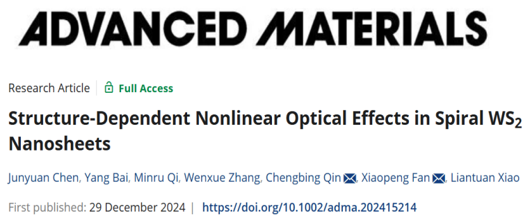近日,我校物理与光电工程学院樊晓鹏团队在二维螺旋莫尔材料研究领域取得重要研究进展。报道了四种代表性二维螺旋WS2结构层相关的非线性光学响应,通过分析晶体结构反演对称性随层厚及层间转角的演变,揭示了螺旋结构非线性光学响应的潜在物理机制,相关研究成果在材料领域顶级期刊《Advanced Materials》发表了题为“Structure-Dependent Nonlinear Optical Effects in Spiral WS2 Nanosheets”的研究论文。