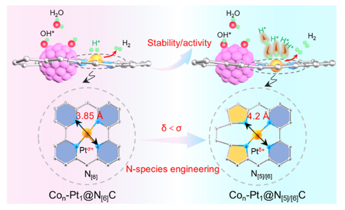 我校材料科学与工程学院王美玲副教授(博导)在电催化领域取得突破,针对Pt-N-C单原子因单一活性位中间体竞争吸附导致碱性HER活性低的问题,通过对其外部环境与本征结构进行调控,强化了催化剂碱性析氢性能,相关成果相继在国际顶级学术期刊《Angewandte Chemie International Edition》以及《Energy & Environmental Science》发表题为“Co Nanoparticle: An Efficient H-pump for Pt Single Atoms Towards Enhanced Hydrogen Spillover” 与“Precision N-Species engineering in Pt–N4 via Ring-Reconstruction towards Efficient Alkaline Water Electrolysis”的研究论文。色情小說为第一通讯单位。