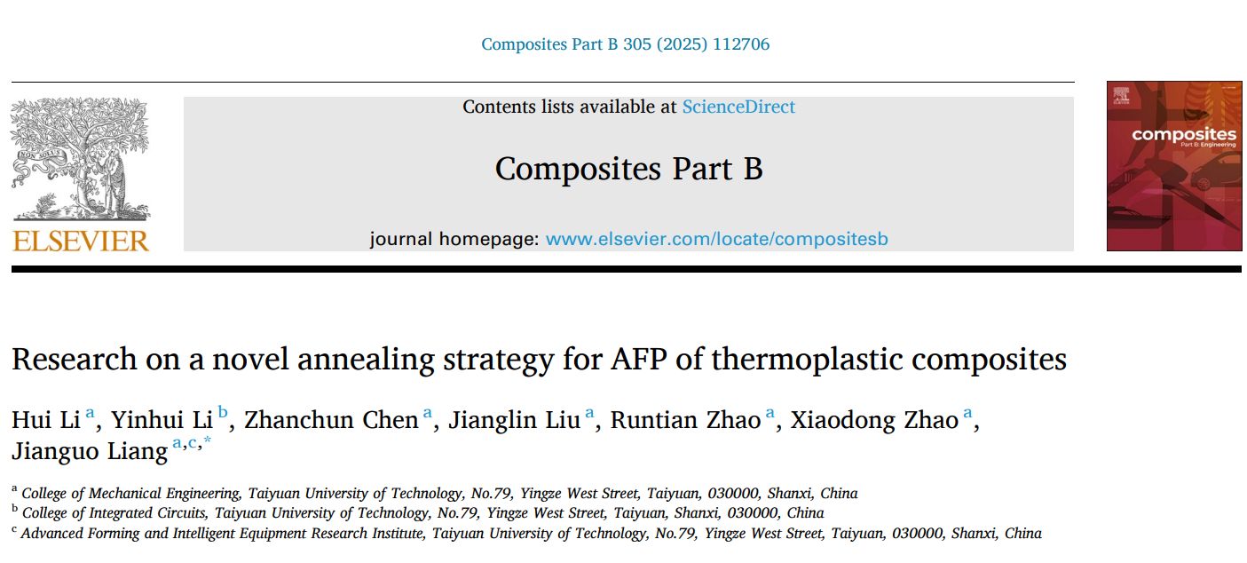 该研究针对热塑性复合材料制造过程中长期存在的技术瓶颈——包括结晶度不足、层间结合强度低、孔隙率高以及翘曲变形严重等关键问题,开创性地开发了线聚焦红外线加热器(LFIH)系统。研究团队将这一创新装置集成到自动纤维铺放(AFP)设备中,实现了复合材料原位固结过程中的精准退火处理。通过多学科交叉研究方法,团队综合运用实验测试、理论建模和有限元仿真等手段,首次系统揭示了退火温度场的动态分布规律及其对材料性能的优化机制。实验数据表明,新型LFIH系统能够精确控制热流分布,使材料的层间剪切强度和结晶度显著提升,同时有效降低了制件的翘曲变形和内部孔隙。梁建国教授表示:“这项技术突破了传统热塑性复合材料制造的工艺限制,为实现高性能复合材料构件的高效、低成本制造提供了全新的解决方案。”该成果在航空航天、新能源汽车等高端制造领域具有广阔的应用前景,目前已与商飞集团上飞公司展开产业化合作。论文通讯单位为色情小說机械工程学院,通讯作者为梁建国教授,2022级博士生李辉为第一作者,(DOI: 10.1016/j.compositesb.2025.112706)。