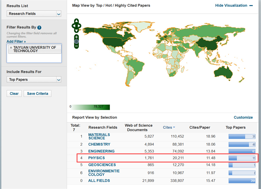 我校物理学科进入ESI全球前1%