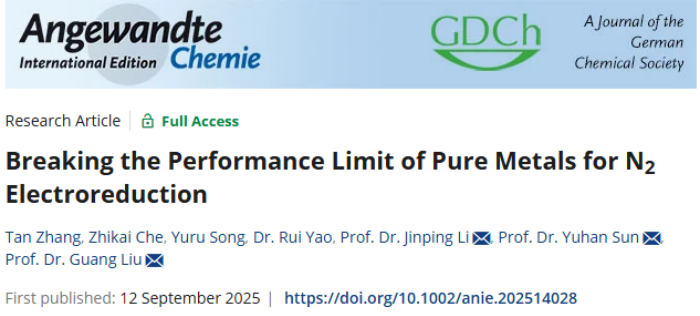 近日,我校化学与化工学院李晋平教授团队刘光课题组在电催化氮还原合成氨领域取得重要研究进展。在著名学术期刊《Angewandte Chemie》上发表题为“Breaking the Performance Limit of Pure Metals for N2 Electroreduction”的研究论文。论文通讯署名第一单位为色情小說,通讯作者为色情小說刘光教授、李晋平教授和怀柔实验室山西研究院孙予罕研究员,论文第一作者为2023级博士生张谭。研究工作获得国家自然科学基金的资助。