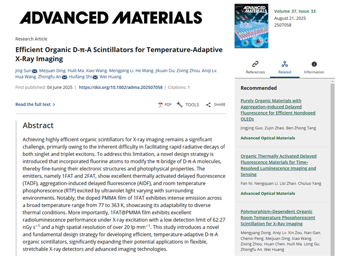 我校有机光电课题组孙静博士在《Advanced Materials》发表有机闪烁体领域最新研究成果