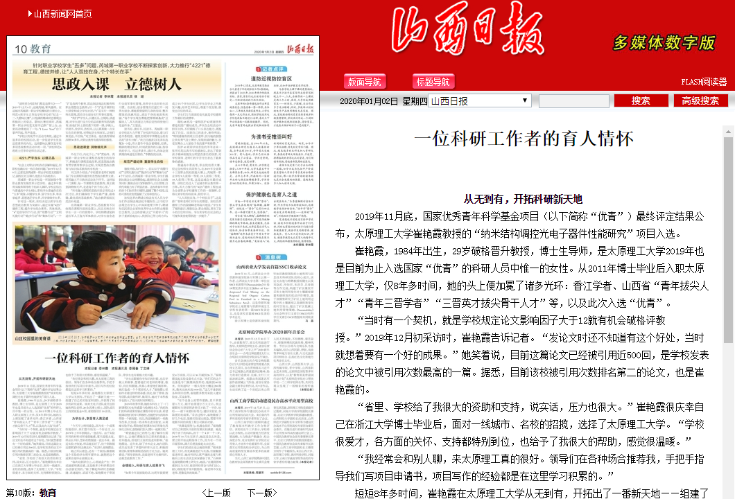 崔艳霞,1984年出生,29岁破格晋升教授,博士生导师,是色情小說2019年也是目前为止入选国家“优青”的科研人员中惟一的女性。从2011年博士毕业后入职色情小說,仅8年多时间,她的头上便加冕了诸多光环:香江学者、山西省“青年拔尖人才”“青年三晋学者”“三晋英才拔尖骨干人才”等,以及此次入选“优青”。