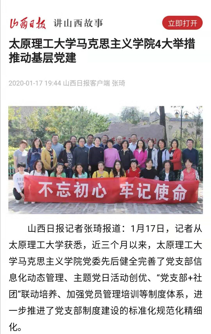 在加强党员管理培训方面,注重强化党务队伍业务培训,定期为党务工作者编印《学习文选》《资料汇编》等,坚持每两周对党务工作者进行一次业务培训,形成了一支有知识、懂制度、讲规范的党务队伍。开辟党员理论学习阵地,创建了“马克思书屋”、“德涵讲坛”理论学习平台,通过邀请专家学、阅读经典学、交流互动学、线上线下学等途径,有效提升党员队伍整体能力和水平。同时,积极拓展教育空间,在吕梁市兴县新建 “晋绥边区革命纪念馆”为革命文化教育基地、思想政治教育基地,“四八烈士纪念馆”为“红色文化教育基地”,不断推动社会参与教育管理制度化、常态化、长效化。