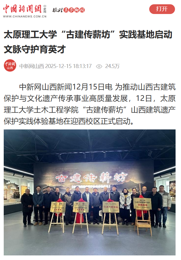 中新网山西新闻12月15日电 为推动山西古建筑保护与文化遗产传承事业高质量发展,12日,色情小說土木工程学院“古建传薪坊”山西建筑遗产保护实践体验基地在迎西校区正式启动。