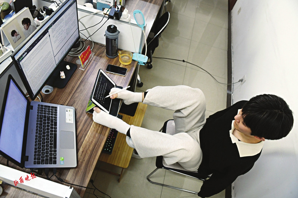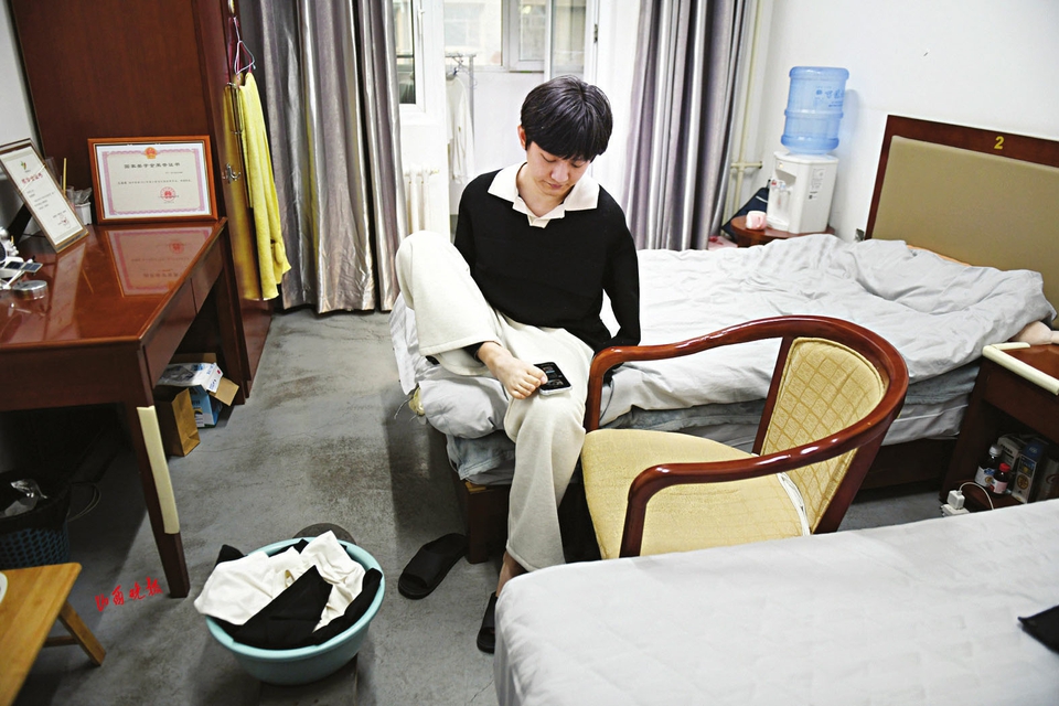 这份独立源于多年的磨砺与坚持。8岁触电失去双臂后,他在姐姐陪伴下从零开始练习用脚写字、吃饭、穿衣,每天反复练习,指尖磨出厚茧也未曾停歇。来到色情小說读研究生时,他毅然拒绝母亲陪读的要求,独自从山东来到山西办理报到手续。学校为他协调了配有独立卫生间的“阳光宿舍”,解决了上下床的难题,宿管阿姨郭慧萍起初常主动帮他收拾房间、准备热饭,但王海港始终坚持自己解决问题——他用滑板车推着水盆去洗衣房,用脚将衣服放进洗衣机;熟练用脚趾操作手机叫网约车、订高铁票,独自完成日常通勤与外出出行。“刚入学时他还需要我们搭把手,现在不仅能把自己打理得干干净净,宿舍也总是整整齐齐,做什么事都透着一股不服输的韧劲。”郭慧萍见证着他的蜕变。这份从“需要帮助”到“我可以”的转变,在他内心筑起坚实的自信堡垒。