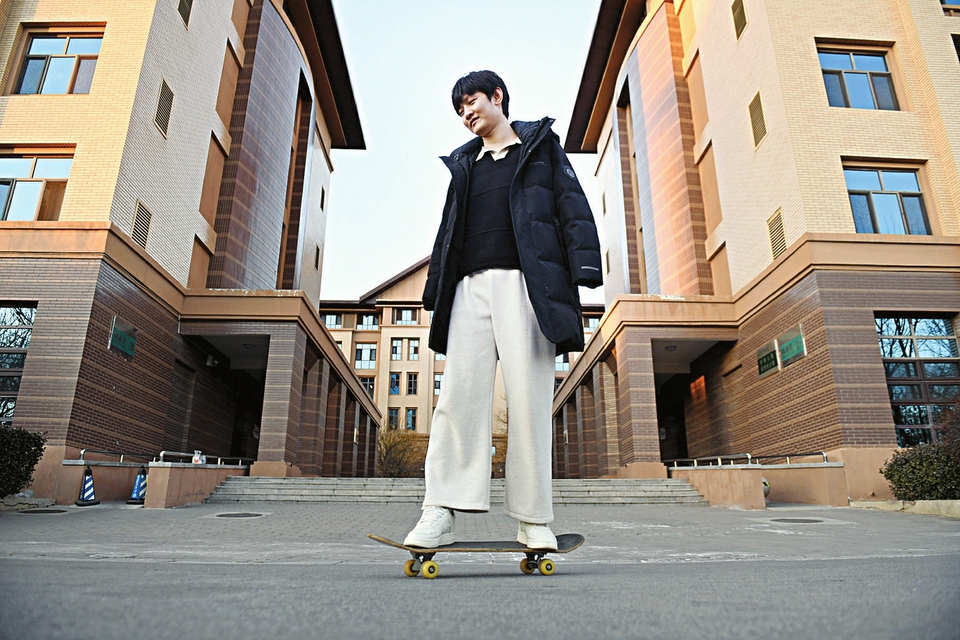 回顾求学路,王海港格外感恩家人的陪伴。尤其是比他大8岁的姐姐,在他初学用脚写字的关键时期,每天陪伴他背古诗、做默写,为他打下坚实基础。“父母对我越没有过高要求,我越想用好成绩回馈他们。”这份亲情支撑着他走过无数艰难时刻,也让他学会以温暖待人。如今的他,早已能坦然面对他人目光,和同学们一同在食堂用餐,用脚拿筷子的动作从容自如,闲暇时还会跑步、玩滑板,用自己的方式丰富生活。