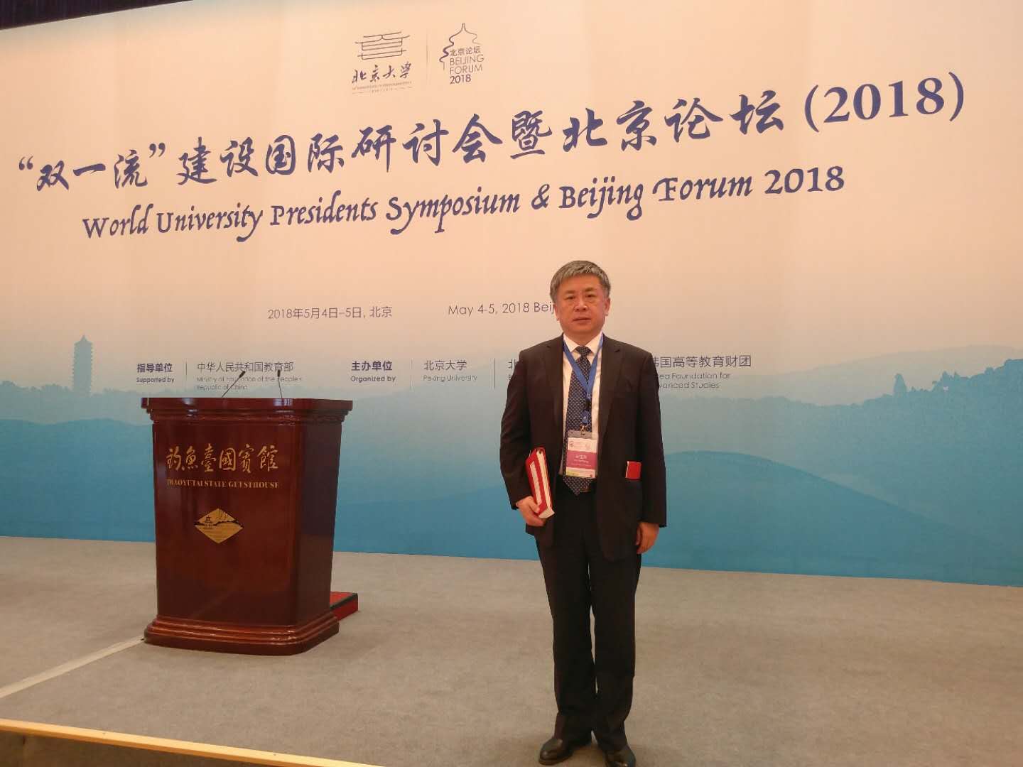 5月4日,“双一流”建设国际研讨会暨北京论坛在钓鱼台国宾馆开幕,国务院副总理孙春兰、北京市市长陈吉宁、教育部部长陈宝生、北京大学党委书记郝平、北京大学校长林建华出席开幕式。来自全球44个国家及地区的260所知名大学校长和各界精英共同探讨高等教育和世界文明的发展趋势。我校党委书记吴玉程出席论坛,并与参加会议的校长、专家就加强校校合作,推进“双一流”建设进行了深入交流。