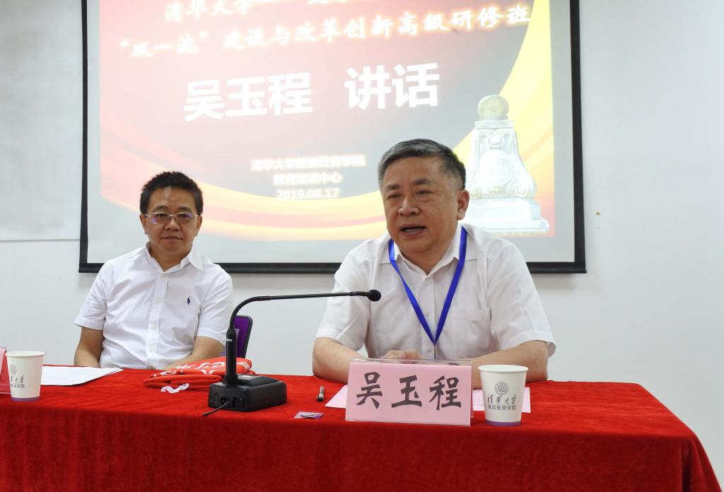 我校党委书记吴玉程首先感谢清华大学的支持、帮助和对研修课程的精心安排,他简要介绍了我校与清华大学战略合作意义和取得的进展,对全体学员提出几点希望和要求,一是珍惜机会,遵守纪律,全心投入,认真听课,真心学习,静心学习,全方位体会清华的人文精神和治学氛围;二是集中精力,加强各方面的交流和请教,向清华学习,向授课老师请教,更新理念;三是通过学习培训,有收获、有收益、有所悟,丰富知识储备,树立创新思维;四是结合我校实际,对比差距和不足,深入思考改进工作的措施和方法。他表示我校将进一步加深与清华大学合作关系,依托清华大学优质资源,扎实推进办学水平的提升。