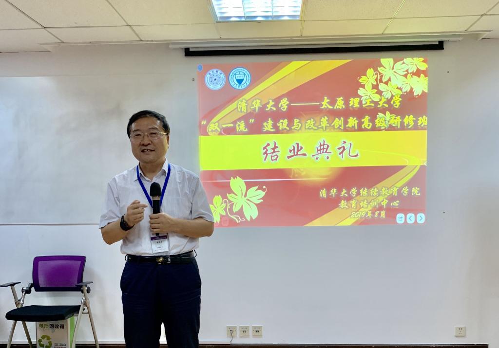 8月23日举行结业典礼。在各学员小组代表做了研修成果汇报后,校党委副书记李晋平做了总结讲话。他首先感谢清华大学继续教育学院对本次高级研修工作的精心组织,感谢授课老师的精彩讲授,祝贺全体学员研修结业。他指出,本次研修收获了许多,大家提高了认识,开拓了视野,收获了知识,清楚了与清华的差距,尤其在使命感、实事求是解决问题方面的认识和理念上的差距,在行胜于言、一张蓝图绘到底、文化共识、文化传承这些做法与理念上的差距。他表示今后学校要多办这类团队学习。他希望大家回到学校后,一要学以致用,对本职工作肯干、猛干、好好干、干就干好;二要举一反三,将本次研修的收获、体悟运用到工作中,结合学校实际做实事;三要牢记初心,担当使命,抓住发展机遇,加快“双一流”建设。