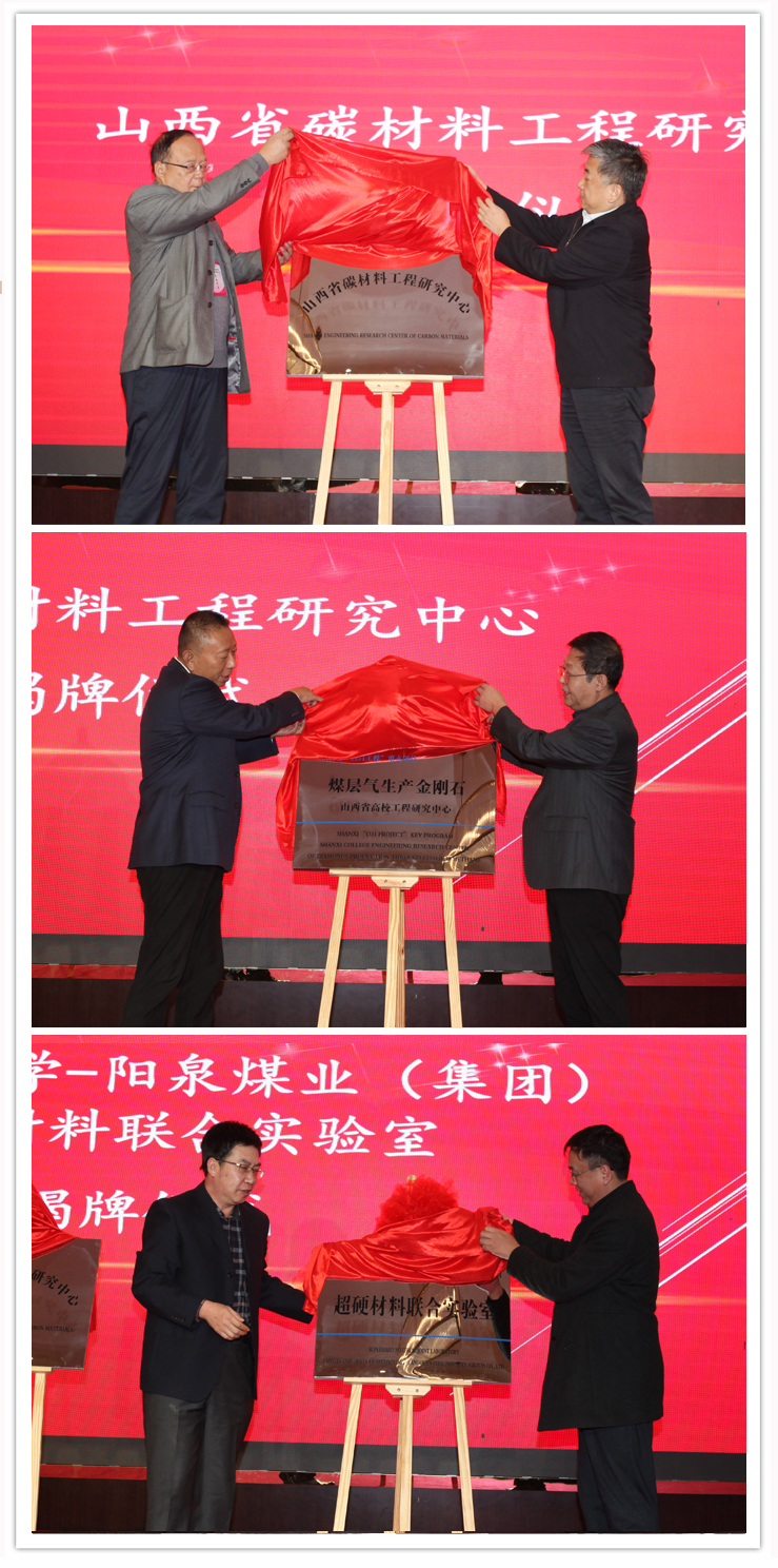 开幕式结束后,举办了山西省碳材料工程研究中心、山西省“1331”重点项目-煤层气生产金刚石山西省工程研究中心、色情小說-阳泉煤业(集团)超硬材料联合实验室揭牌仪式。吴玉程、陈建敏、树学峰等为三个中心及实验室揭牌。