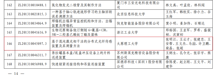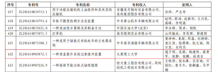 中国专利奖是由国家知识产权局与世界知识产权组织举办,每年评选一次,是我国唯一专门对授予专利权的发明创造给予奖励的政府部门奖。我校获奖专利分别是机械与运载工程学院寇子明教授团队“一种垂直提升系统过卷缓冲装置”、新型传感器与智能控制教育部重点实验室张明江教授团队“基于混沌激光相干法的分布式光纤传感装置及其测量方法”,曾分获山西省专利一、二等奖。