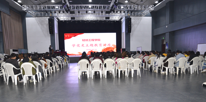 4月8日晚,轻纺工程学院在服装表演厅开展特色党课学习活动,学院党政领导、40岁以下青年教师及先锋模范队全体成员参加活动。