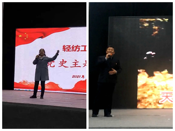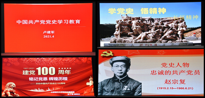 活动采用主题党课穿插红歌演唱、革命诗歌朗诵、艺术表演的方式进行。主题党课部分,院党委书记卢建军围绕党的发展理念的演变展开讲述,强调广大青年师生要学史明理,树立大历史观,从历史长河、时代大潮、全球风云中分析演变机理,探究历史规律。副院长孙卜昆以中共一大的背景及经过为主线,讲述了建党初心与艰辛,以及马克思主义给中国革命带来的深远影响。院党委副书记张莉讲述了万里长征的坎坷与伟大,强调了中国共产党一不怕苦、二不怕死、百折不挠、自强不息的革命大无畏精神。院团委负责人则展示了我校首任校长赵宗复波澜壮阔的人生画卷,不论是解放前统战和地下工作中的出生入死,还是解放后任太原工学院校长期间的躬身教育,用行动践行了一位共产党员对党的无限忠诚。