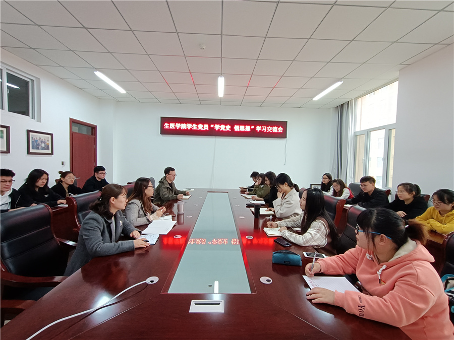为充分发挥学生党员在青年学生中的引领作用,4月8日下午三点,生物医学工程学院在学院408会议室召开学生党员“学党史 悟思想”学习交流会,院党委副书记李昱霞,本科生党支部书记杨雪芬,辅导员刘颖、杨晨鹏参加了本次学习交流会。
