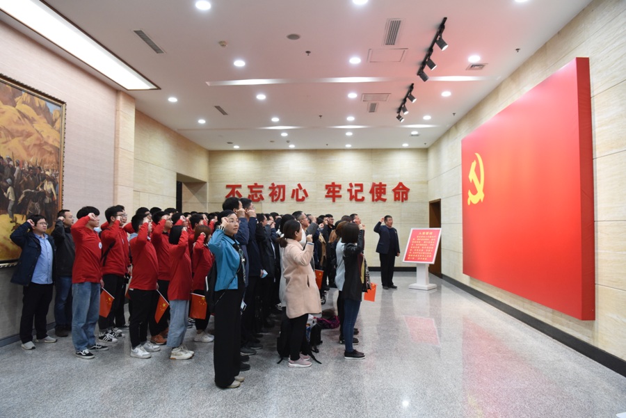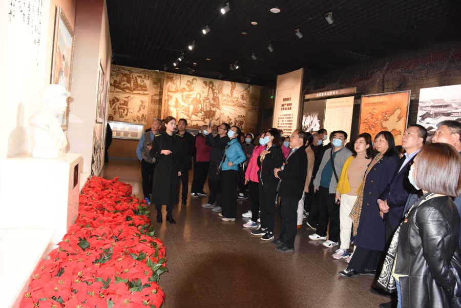 纪念馆门前,全体成员高唱“没有共产党就没有新中国”革命歌曲。纪念馆内,全体党员面向鲜红的党旗重温了入党誓词,牢记和坚定共产党人的初心和使命。随后,全体师生集体参观纪念馆,认真聆听讲解员述说老一辈革命家的丰功伟绩,驻足观看陈列的文物、文献、书级和照片,回顾八路军英勇抗击日本侵略者的革命历史,重温中国共产党波澜壮阔的伟大历程。实地参观后,师生们分组进行了深入交流,畅谈了体会感悟。