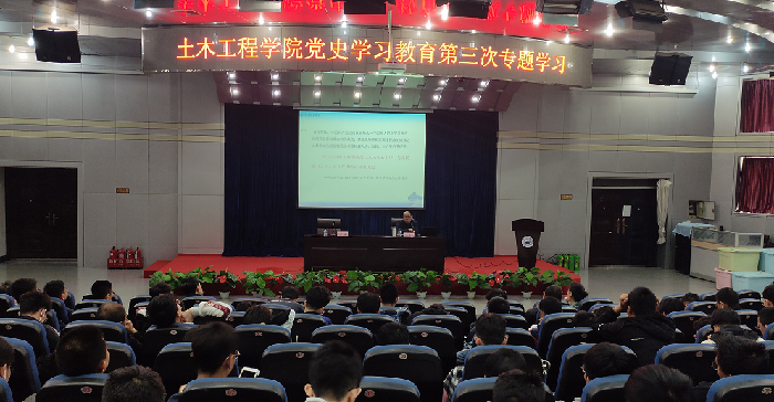 4月24日,土木工程学院于思贤楼三层会议室开展党史学习教育第三次专题学习,会议邀请了马克思主义学院李建勇教授做主题报告,院领导班子成员及学院全体2021年春季入党积极分子、学院各支部党员参加了学习,报告会由院党委副书记芦倩主持。