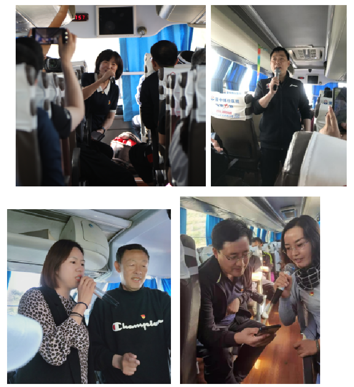 前往左权县途中,广大党员开展了“移动党史课堂”学习交流活动,雒晓东老师分享了以《北京奥运百年梦圆》为主题的一堂专题党史课,党员们纷纷表示继续发扬和平、友谊、团结、拼搏的奥运精神,激励自己“学党史、悟思想、办实事、开新局”;随后朗诵领袖诗词、唱红歌活动将现场交流进一步推向高潮,在党员同志们的慷慨激昂的朗诵中,将毛泽东笔下橘子洲头的万山红遍、井冈山上的旌旗在望、重阳里的战地黄花、万里长征的不怕远征难一一再现。在学唱《祖国不能忘记》的歌声中,开展红歌演唱比赛,嘹亮的歌声激发了同志们强烈的爱国情怀,释放了恢弘昂扬的力量,更是唱响了学院的光荣与梦想。以唱红歌、诗朗诵、讲党史为内容的“移动党史课堂”打破了以往学习中“读本”方式,让党员能够听到、感受到党史故事。