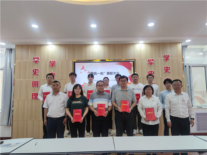 随后,学院召开“两优一先”表彰座谈,钟明涛宣读表彰决定以及表彰名单,徐鑫、马旭莉为获得学院“先进基层党组织”“优秀共产党员”和“优秀党务工作者”称号的党员颁发证书,获奖代表进行发言。
