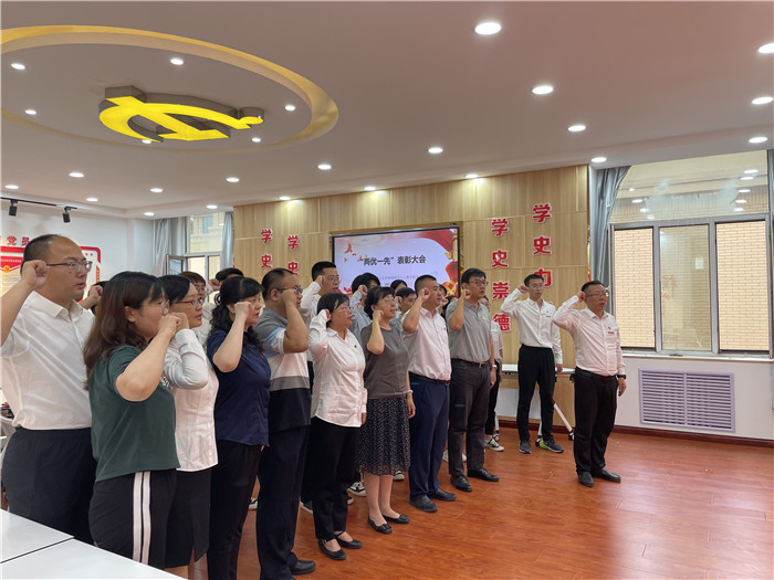 7月1日,环境科学与工程学院组织党员代表集体观看庆祝中国共产党成立100周年大会,并召开“两优一先”表彰座谈会,院党委书记徐鑫、副院长马旭莉和各支部书记、党员代表参加会议,会议由党委副书记钟明涛主持。