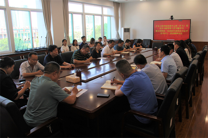7月5日下午,矿业工程学院在虎峪校区致明楼318会议室召开党委中心组(扩大)党史学习教育第八次专题学习会,学习全国“两优一先”受表彰代表先进事迹,以及习近平总书记在庆祝中国共产党成立100周年大会上的重要讲话精神。院党政班子成员、三办一委负责人、全体党支部书记、各系(中心)主任、机关干部参加了会议。院党委书记薛武杰主持会议。