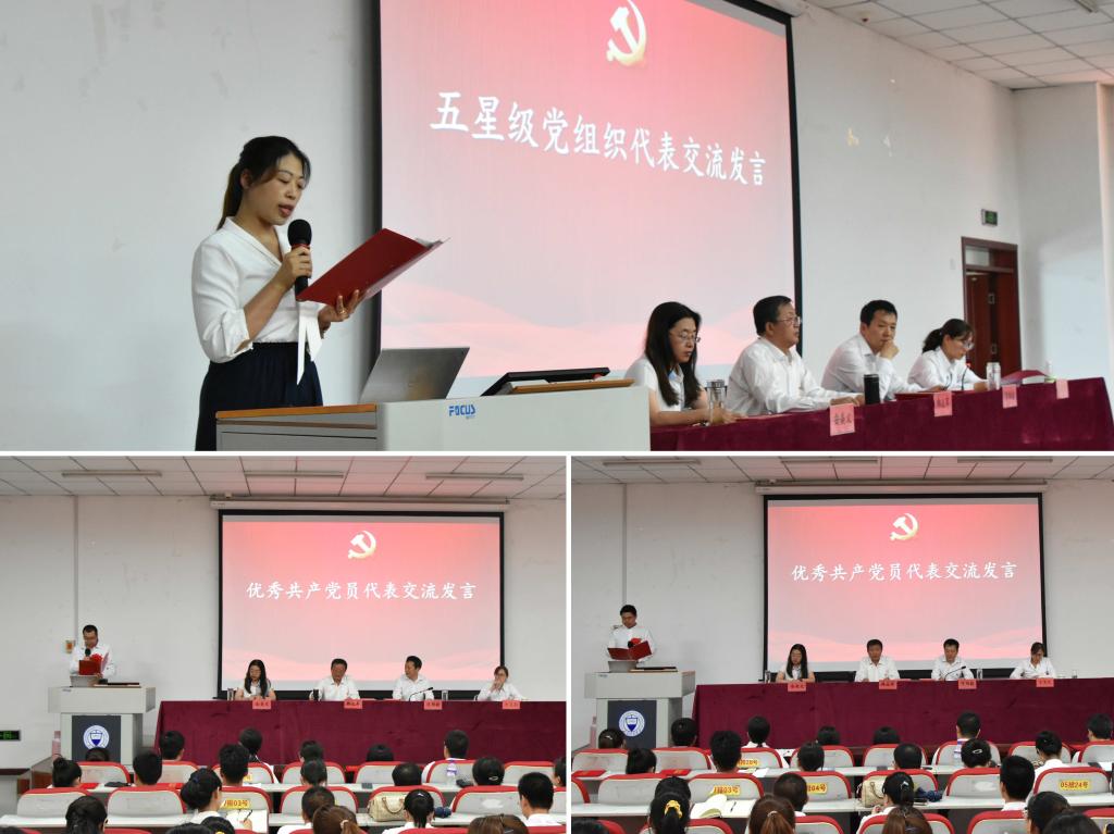 大会伊始,全体起立,奏唱国歌。李昱霞宣读“两优一先”表彰决定。院领导为先进基层党组织代表,优秀党务工作者,优秀共产党员等受表彰的先进集体和优秀个人颁奖并合影留念。号召全院师生以他们为榜样,务实进取,奋发图强,为学院发展做出新贡献。随后,五星级党组织代表、生医本科党支部书记杨雪芬分享了评选过程中的体会和心得,她指出,这份荣誉是集体的智慧和力量的结晶,对领导的支持、鼓励和师生的帮助以及付出努力的支部成员表达了诚挚的谢意。优秀党员教师代表武晓刚发言时指出:必须要立足本职岗位、善于学习、勇于创新才能发挥先锋模范作用。优秀党员学生代表吕营发言说:要听党的话,跟党走,全心全意为同学们服务。