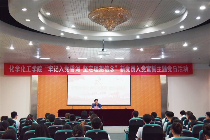 6月29日,化学化工学院在科学楼二层报告厅举办了“牢记入党誓词 坚定理想信念”新党员入党宣誓主题党日活动。院党委书记来志斌出席活动,学院各学生党支部书记和新发展党员共计150人参加了此次主题活动。