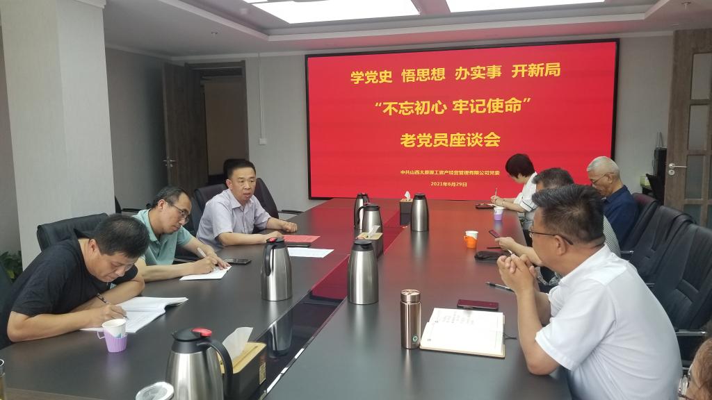 6月29日,资产公司党委在公司会议室召开“话党史 颂党恩 忆初心 跟党走”老党员座谈会,共庆中国共产党成立一百周年。公司党委委员、党总支书记、老党员代表参加会议。公司党委副书记曹世正主持会议。
