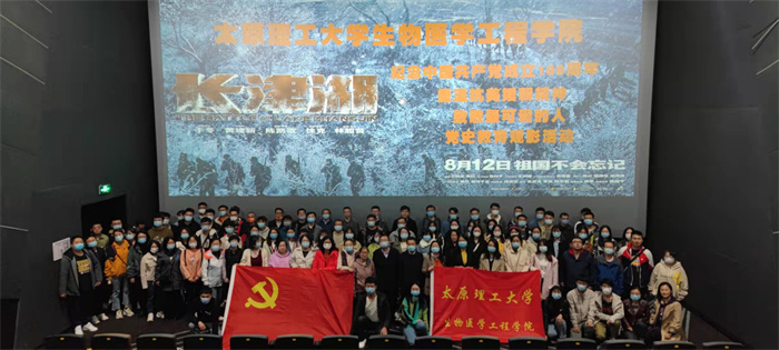 为传承红色基因、赓续红色血脉,创新学习形式,扎实开展党史学习教育,2021年10月12日下午,生物医学工程学院组织全体教师和学生党员集中观看红色电影《长津湖》。电影以抗美援朝战争中长津湖战役为背景,讲述了志愿军战士硝烟浴血、勇往直前,在极度严酷环境下坚守阵地奋勇杀敌,为长津湖战役胜利作出重要贡献的感人故事。