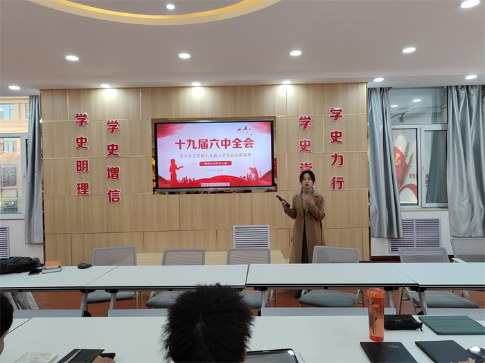 在全国上下深入学习贯彻党的十九届六中全会精神之际,11月26日,环境科学与工程学院给排水本科党支部举办党的十九届六中全会精神专题学习会议,进一步深入学习全会精神,给排水本科党支部全体党员参加会议,会议由给排水本科党支部书记巩佳佳主持。