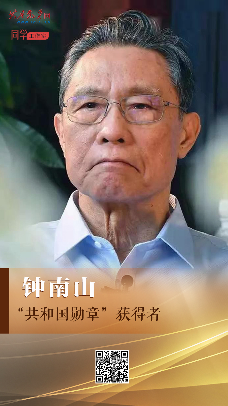 钟南山,男,汉族,中共党员,1936年10月生,福建厦门人,广州医科大学附属第一医院国家呼吸系统疾病临床医学研究中心主任,中国工程院院士,第十一、十二届全国人大代表,第八、九、十届全国政协委员。他长期致力于重大呼吸道传染病及慢性呼吸系统疾病的研究、预防与治疗,成果丰硕,实绩突出。新冠肺炎疫情发生后,他敢医敢言,提出存在“人传人”现象,强调严格防控,领导撰写新冠肺炎诊疗方案,在疫情防控、重症救治、科研攻关等方面作出杰出贡献。荣获国家科学技术进步奖一等奖和“全国先进工作者”“改革先锋”等称号。