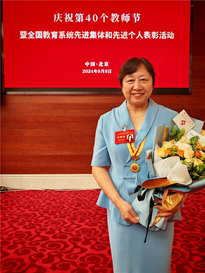 庆祝第四十个教师节暨全国教育系统先进集体和先进个人表彰活动9月8日在京举行。我校国家级教学名师董宪姝教授作为代表参加此次活动,并受到了习近平总书记等党和国家领导人的亲切接见。这一殊荣不仅是对董宪姝教授多年来在教育领域辛勤耕耘、卓越贡献的高度肯定,更是对我校教育事业高质量发展的有力鼓舞。