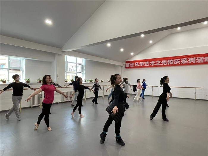 3月8日下午,学院女教职工们先后分两批来到活动现场,在特别邀请的专业舞蹈教师带领下,通过身体拉伸组合、芭蕾形体训练以及蒙古族舞蹈训练等,学习和掌握如何塑形、美化肌肉线条,切身感受民族舞蹈的独特气质与内涵,不断提升自身审美与修养。