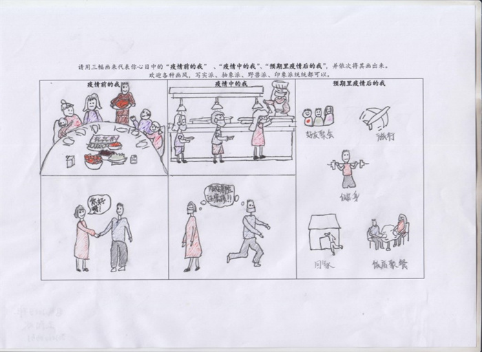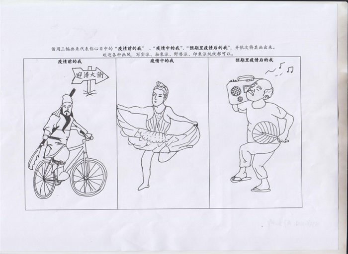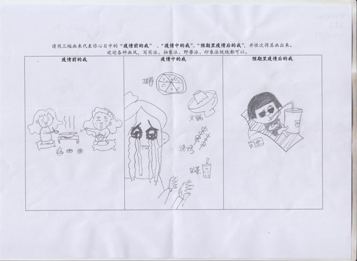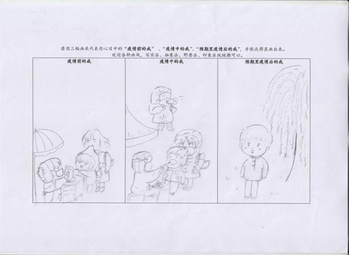 此次绘画征集活动为命题作画,题目为“请用三幅画代表你心目中疫情前、中、后自我的状态”,面向全校范围广泛征集,共收集到线上、线下作品70余幅,绘画作品风格迥异、别出心裁,共评选出优秀作品6幅。