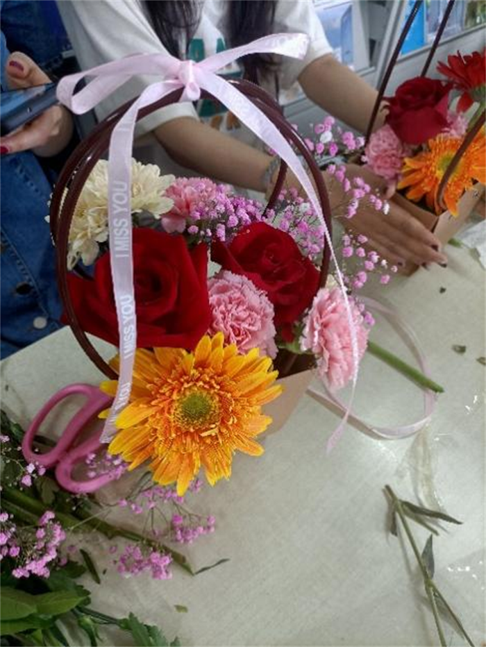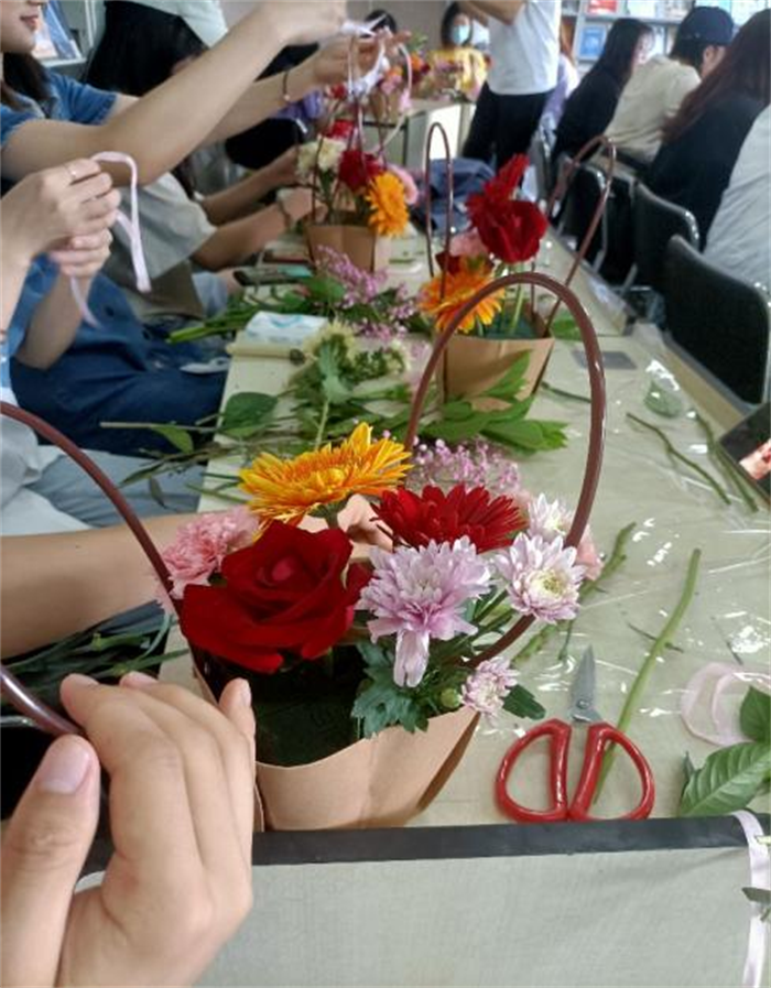 5月28日上午9点,在思韵楼五层安心心理社活动室,“生命在绽放—浪漫插花”活动正式开始,本次活动邀请专业插花老师线上指导。本次活动为同学们准备了品种多样的花朵,同学们可以从中挑选自己喜欢的花朵,并尝试搭配出漂亮的花束。在经历两个小时的精心搭配装饰后,一件件花样各异、绚烂缤纷的花艺作品完美呈现,笑容如手中花篮中的花儿一张绽放。该活动旨在为同学们带来快乐,让同学们在闲暇的时光中感受艺术的熏陶,用一束束花朵来放松身心,陶冶情操,体会自己动手的魅力。这不仅是视觉的享受,更是心灵的体验。
