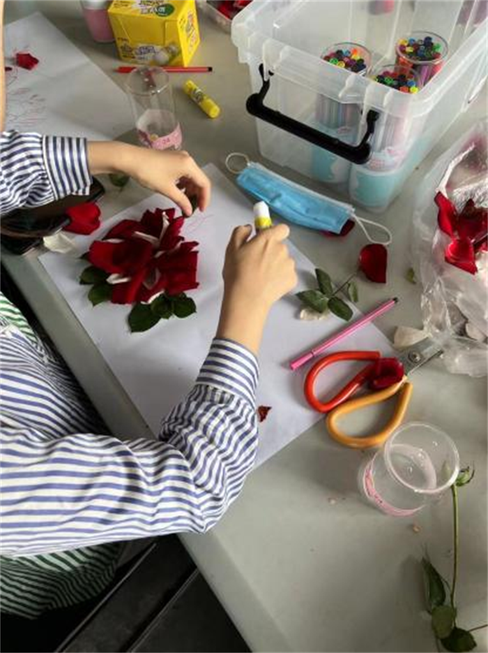 5月29日上午9点,在思韵楼五层安心心理社活动室,创意花绘活动顺利开展。飘零的花瓣以另一种形式展现了她们的美,诉说着:“即使飘零,她们的美亦是足以惊艳世人的。“这就是生命延续的意义。大家用有限的工具和花叶进行绘画,虽然同学们平时很少接触花绘,但还是用自己的双手,发挥自己的想象力,创作出了一幅幅最美的作品,让凋零的花朵重新绽放。通过本次活动,同学们意识到,没有谁的存在是没有价值的,生命的价值和意义在于延续,大家应学会探索自己的价值,悦纳自我,成就自我。