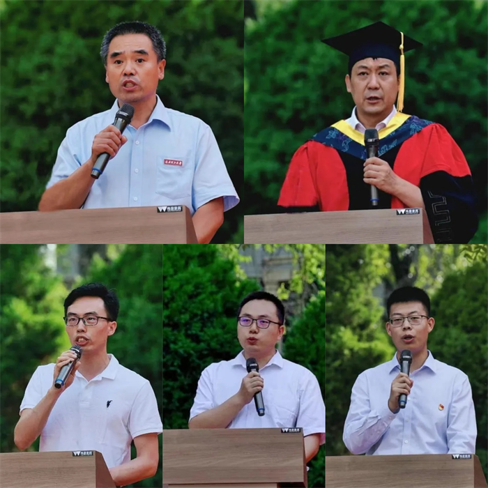 曹勇老师作为教师代表发言,他祝福毕业生一路顺风,前程似锦,希望大家尽快适应角色的转变,继续保持学习的心态,在青春的赛道上奋力奔跑。2018级博士生王翔宇、车辆1801班郭欣雨同学代表全体2022届毕业生发言。两位毕业生代表的发言中,都表达了感恩母校,感念师恩,他们表示将来无论是投身科研,扎根基层,创业就业,还是继续深造,一定会牢记母校教诲,常怀家国情怀,永葆赤子之心,在自己的人生舞台上,务实笃行,不懈奋斗,回馈母校,回馈社会。